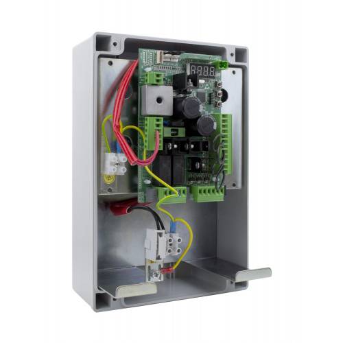 24-вольтовый привод обеспечивает высокую интенсивность , подходит для использования на больших створках ворот, а также позволяет подключать батареи резервного питания (аккумулятор) для бесперебойной работы даже во время отсутствия электроэнергии.