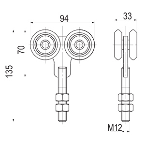 Средний комплект для изготовления подвесных ворот Rollgrand (Украина). В комплект входит: 2 каретки и оцинкованная направляющая длиной 6 метров.
