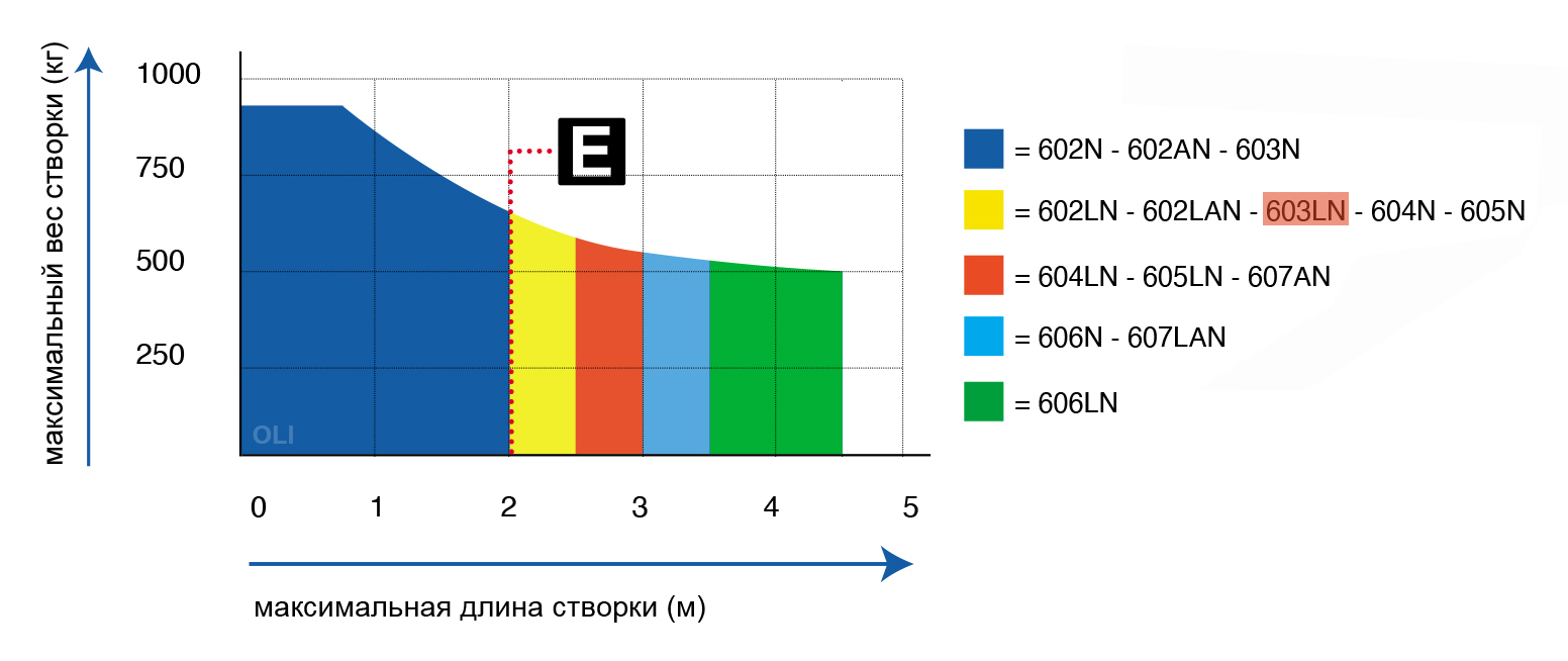 2,5 მეტრამდე სიგრძისა და 600 კგ-მდე წონის კარისთვის. ჩვენ გირჩევთ, რომ შეისწავლოთ ქვემოთ მოცემული ცხრილი:
