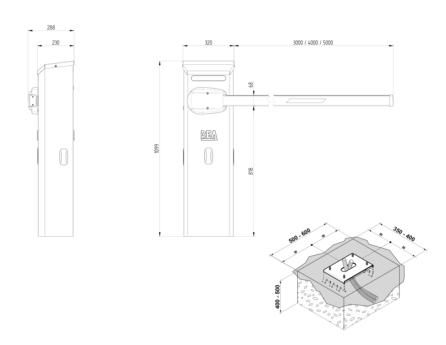 – Стальная окрашенная тумба (оцинкованное покрытие, корпус обработан методом катафореза и имеет сверхстойкое полимерное покрытие) с запирающейся боковой крышкой. Внутри тумбы шлагбаума размещены: блок управления NET24N/C со встроенным понижающим трансформатором большой мощности, а также стальной редуктор с электродвигателем, снабжённым энкодером, балансировочная пружина (1 шт.). На тумбе расположены отверстия для крепления фотоэлементов (закрыты специальными заглушками), внутри тумбы при желании встраивается светодиодная сигнальная RGB лента (приобретается отдельно), площадка для крепления стрелы. Вес тумбы – 41 кг.