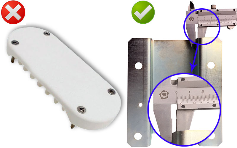Слева, на рисунке выше, вы видите крепёж стрелы автоматического шлагбаума другого производителя. Он сделан из “порошка” и крепится на саморезы, похожие на те, которые продаются в “Детском Мире”. Справа на картинке – крепление стрелы шлагбаума PASS N, оно выполнено из высокоуглеродистой оцинкованной стали. Какое прочнее? Ответ очевиден даже для школьника младших классов.